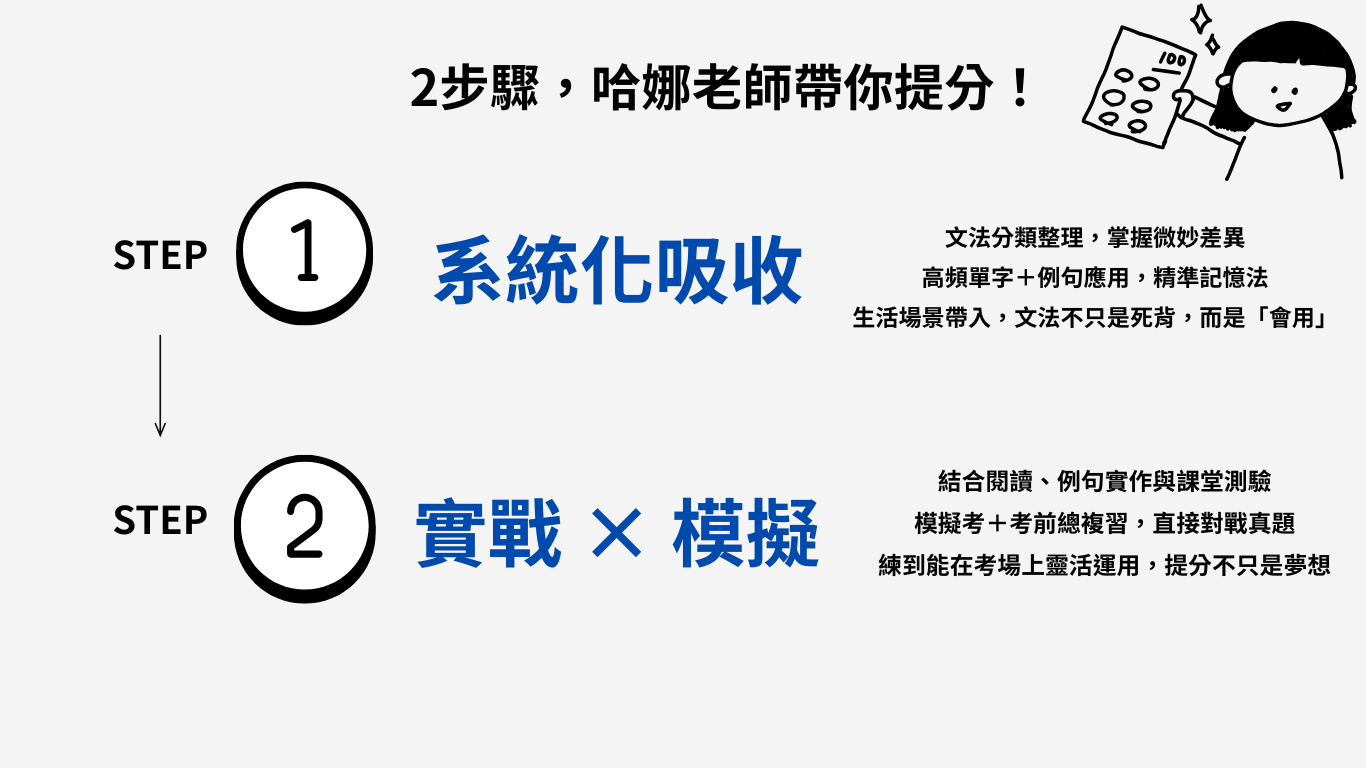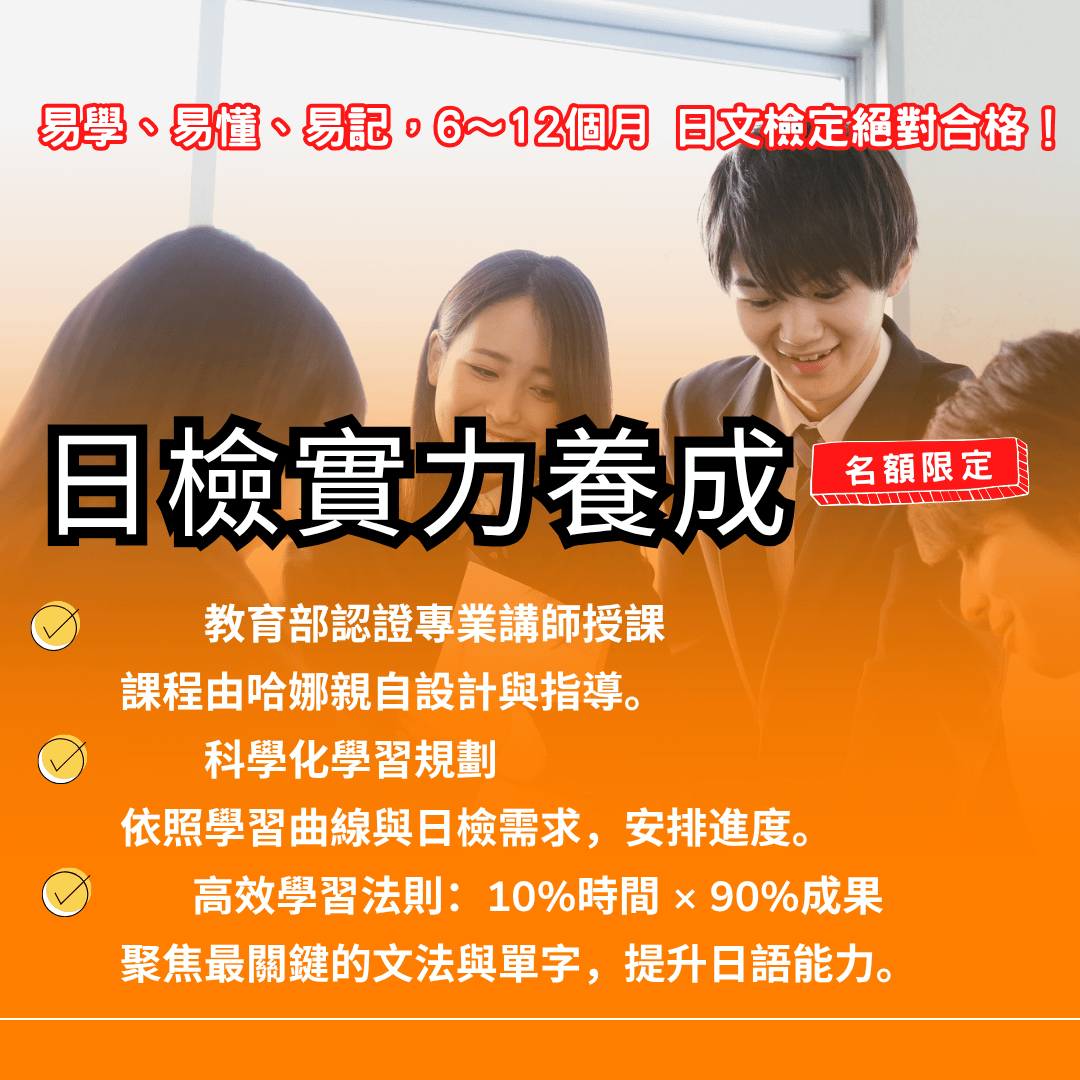 ※ 該課程只有文法線上課程,欲報名檢定文法+口說課,請洽哈娜日語
